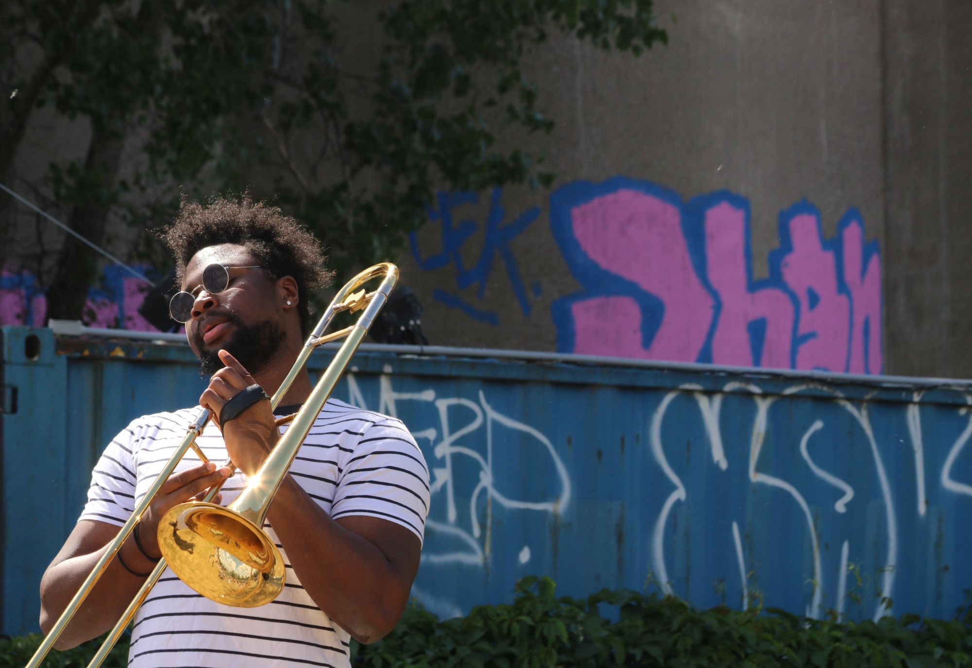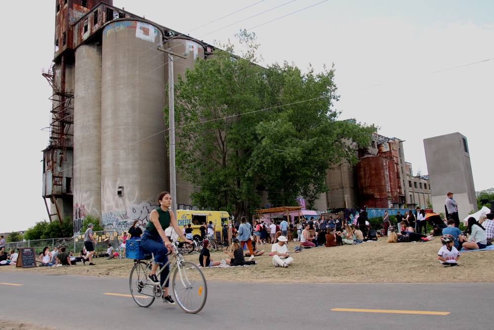 La carcasse de la Canada Malting tatouée de graffitis dresse une toile de fond Street Art à la scène champêtre urbaine. Un groupe de jazz en shorts fait revivre les standards d’Oscar Peterson et d’Oliver Jones, gamins du quartier voisin de la Petite-Bourgogne. Le solo de trombone étire ses notes, tranquille.