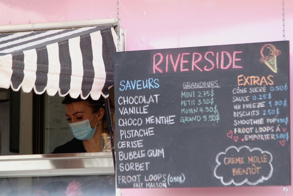 Les prix ont bien changé, mais les saveurs à la craie au tableau du Riverside n’ont pas pris une ride : choco menthe, pistache, vanille, cerise… Extra de 50 cents pour une pincée de Froot Loops faits maison.