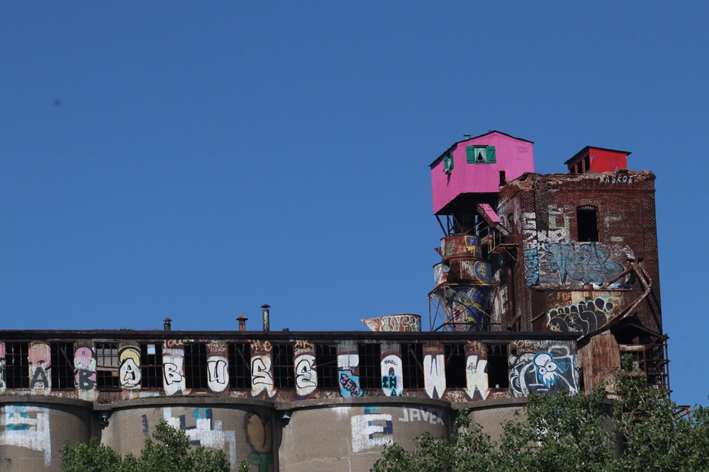 Là-haut, sur la crête des silos, une pimpante cahute s’agrippe à la falaise de briques. Œuvre anonyme d’un artiste téméraire, elle a fleuri sur les décombres. À ses fenêtres aux volets verts sont accrochées des jardinières de géraniums en plastique. Elle est rose. Rose bonbon, rose cucu, comme l’espoir de jours meilleurs, comme le bonheur perdu.