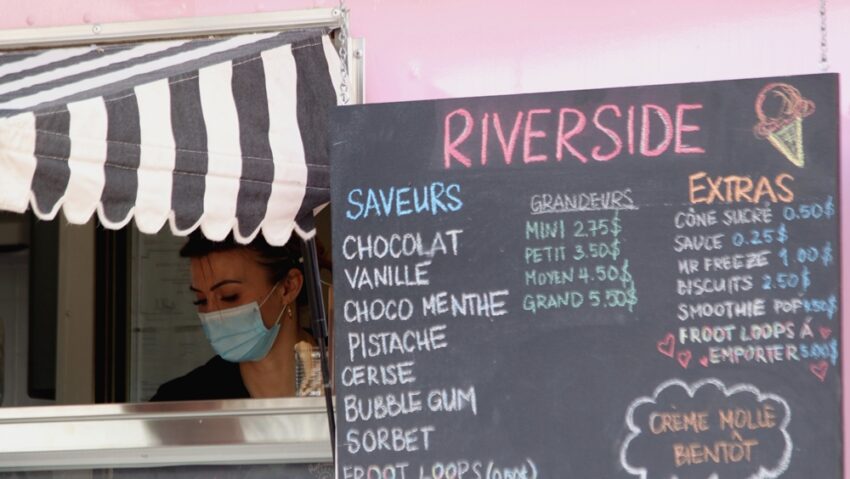 Les prix ont bien changé, mais les saveurs à la craie au tableau du Riverside n’ont pas pris une ride : choco menthe, pistache, vanille… Extra de 0,50 $ pour les Froot Loops. Faits maison. Les temps ont changé.