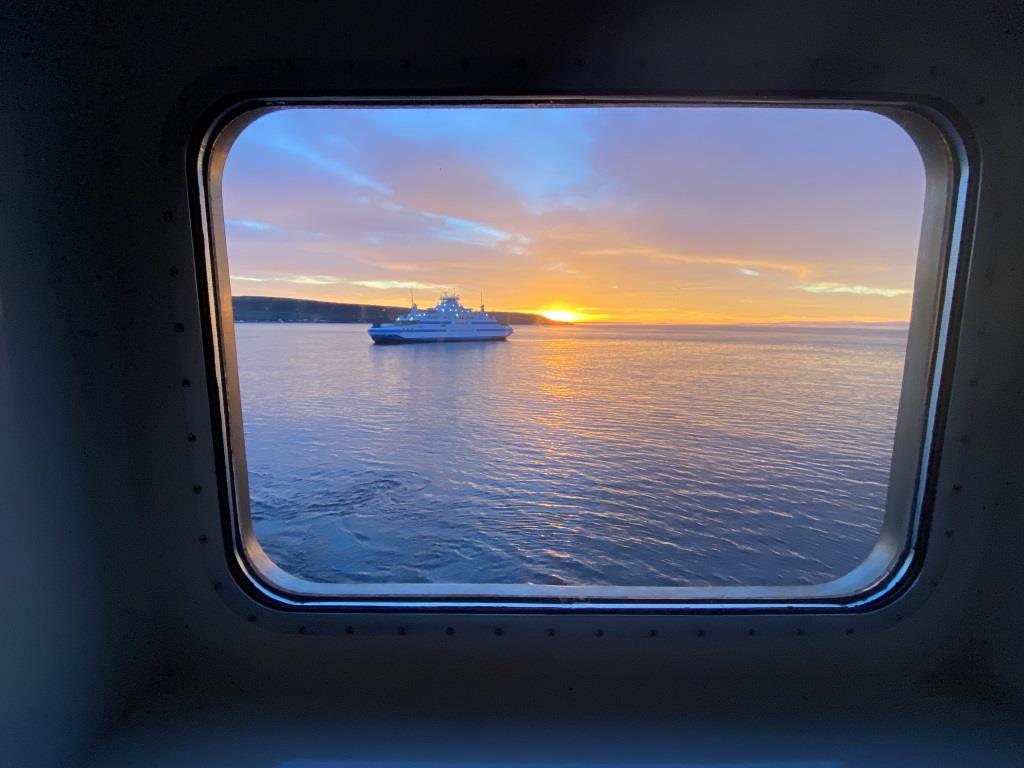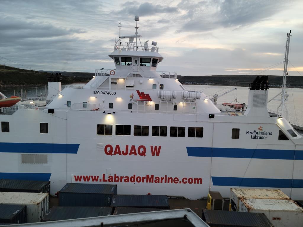 Vendredi 23 septembre, au petit matin. Après une navigation nocturne sans escale depuis Tête-à-la-Baleine, le Bella accoste au quai de Blanc-Sablon. Un navire se découpe dans le hublot de notre cabine. Un vaisseau presque fantôme après des centaines de milles sans croiser âme qui vive au large. C’est le Qajak W, le traversier qui relie le Labrador et Blanc-Sablon à St. Barbe, à Terre-Neuve, une traversée de 36 kilomètres du détroit de Belle-Isle.