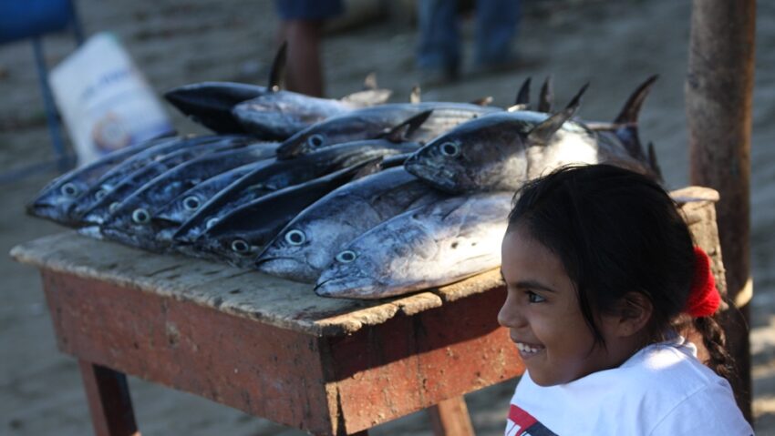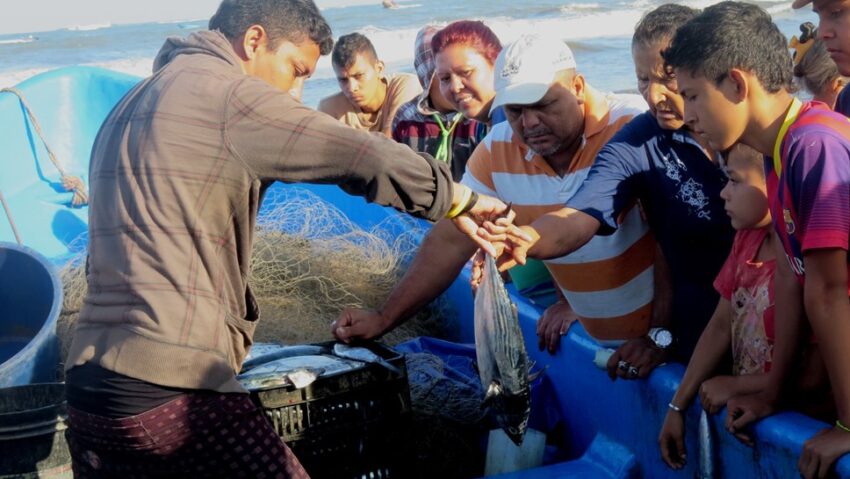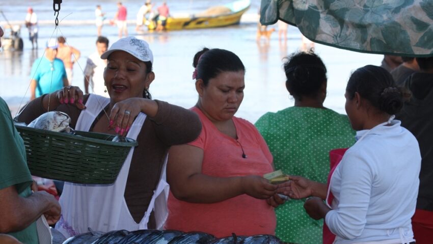 Tous les matins jusqu’à la grosse chaleur, les vendeuses à la taille généreuse nettoient, filètent, pèsent et vendent le pargo, la macarela, la corvina sur des étals rustiques recouverts de chaume de palmier. Tous les soirs au crépuscule, les lanchas reprennent le large pour pêcher le pain quotidien.