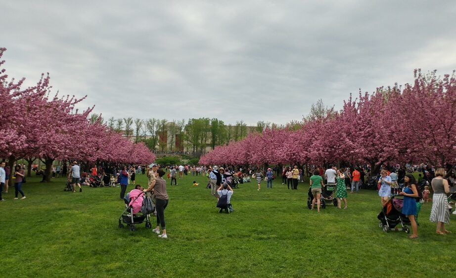 Pour admirer le spectacle printanier, une foule s’est abattue comme une volée de moineaux sur le Jardin botanique de Brooklyn en cette matinée gratuite. Des gens de tous horizons, couleurs et âges. De l’ado en boutons à la vieille branche dure de la feuille.
