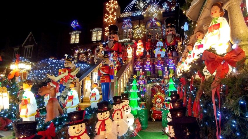 16 h 30. Un soleil pâlot éclaire une dernière fois les deux tambours-majors de Casse-Noisette qui gardent l’entrée d’une demeure de Dyker Heights. Dans une demi-heure, un feu d’artifice électrique embrasera les rues paisibles de ce quartier du sud-ouest de Brooklyn. Les compteurs affolés feront défiler leurs kilowatts à la vitesse de la lumière.