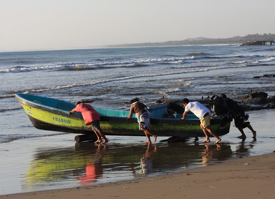 Masachapa n’a pas de port, seulement une plage de sable pour venir s’échouer. Le haut-fond sablonneux de la côte se prolonge loin au large jusqu’à une barre de récifs immergés, percée de deux passes étroites. Les jeunes les ont apprivoisées avec leurs pères et grands-pères.