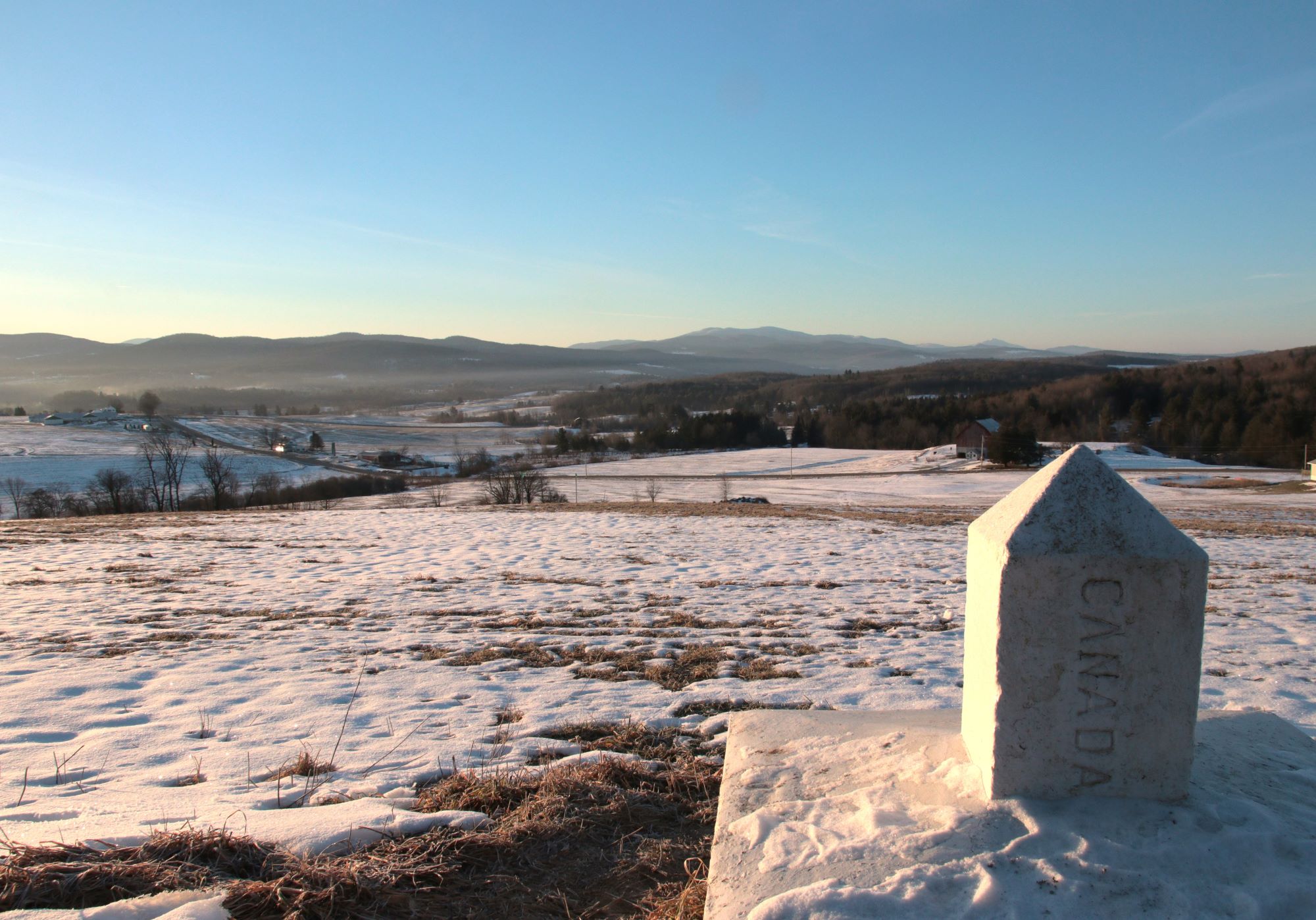 Aucune clôture barbelée ne divise le Canada et les États-Unis sur leurs 8 891 km de frontière non militarisée. Dans les forêts, un bulldozer agrippé au 49e parallèle a défriché une travée de six mètres que ne respectent ni les ours ni les chevreuils. Les grands accès frontaliers sont toujours ouverts, mais pas les douanes de campagne. Le poste de East Pinnacle en haut de la côte ferme à 16 h.