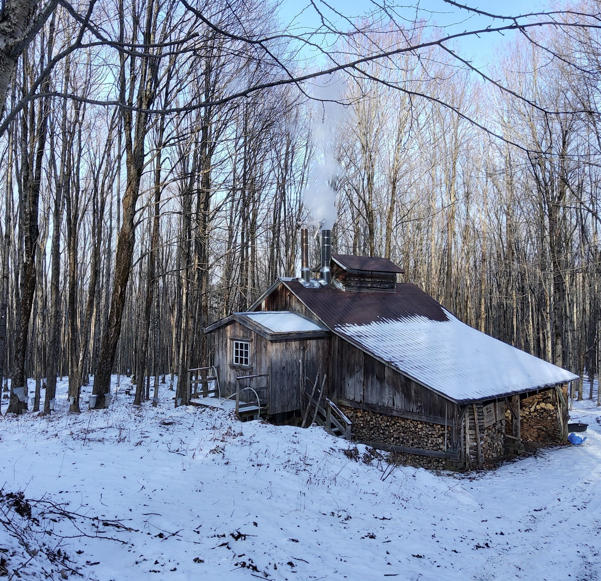 Claude ne fait les sucres qu’une année sur deux. Autrefois, la cabane accueillait famille et amis, petits et grands. Les bras ne manquaient pas. L’an dernier, nous étions quatre vaillants cueilleurs d’eau à la rescousse : Monique et moi, Claude et son ami Pierre. Cette année, la cabane est en dormance.
