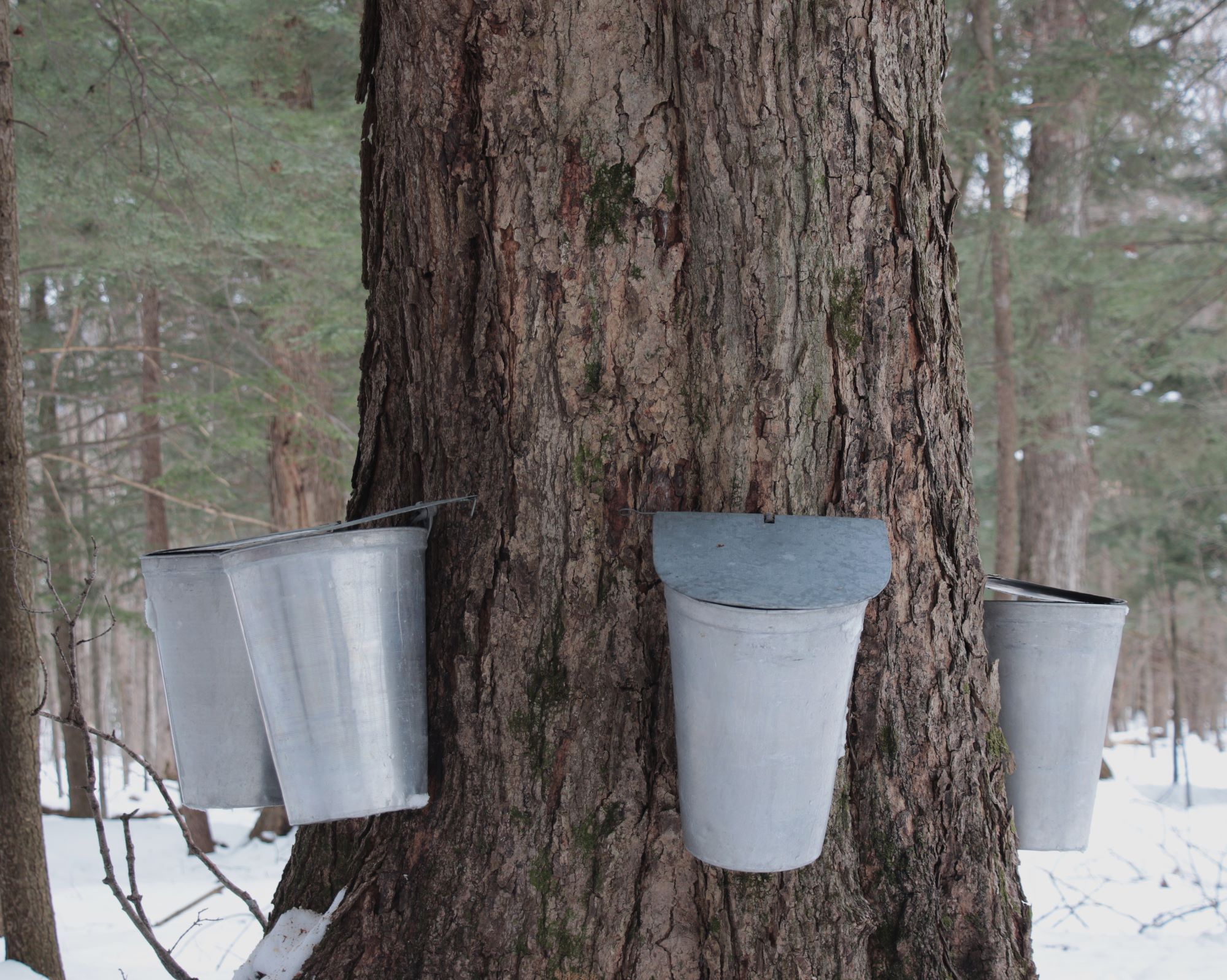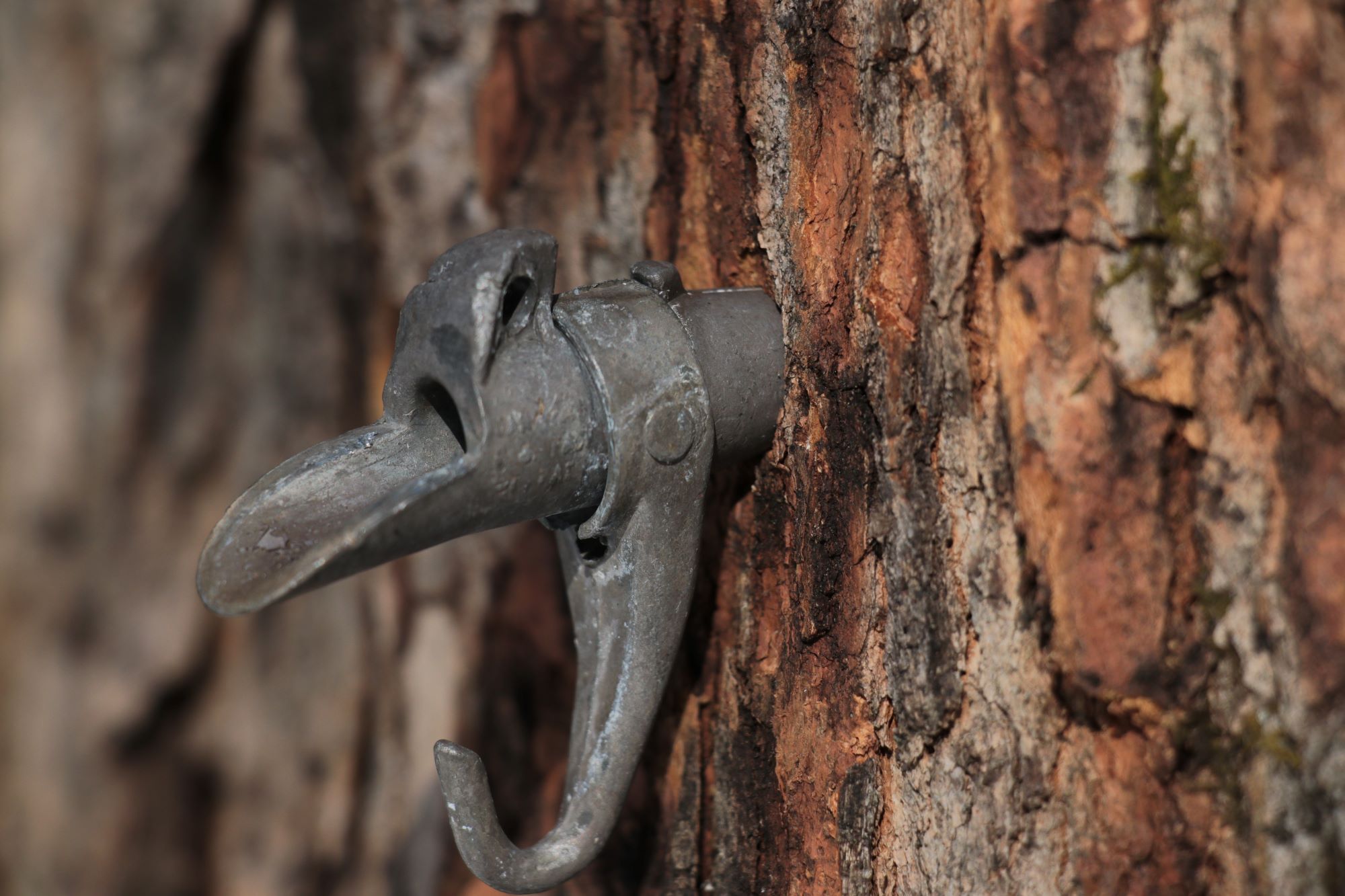 Comment l’humain a-t-il découvert la divine fontaine ? Pour expliquer l’origine, on dénombre autant de récits que de soirées d’hiver autour du feu. Des Amérindiens, les nouveaux arrivants ont appris le respect de la vie forestière. Comme l’érable est un être vivant, il faut l’aborder sans l’agresser. On n’entaille pas un arbre de moins de 8 pouces de diamètre. On ne prélève pas plus de 5 % de sa réserve de sucre. L’année suivante, on laisse se reposer la zone meurtrie en perçant un nouveau trou à 3 pouces latéralement et à 6 pouces verticalement du trou précédent. On privilégie le côté sud de l’arbre, plus réchauffé par le soleil. Après la récolte, on retire délicatement le chalumeau du tronc pour que la cicatrice se referme.