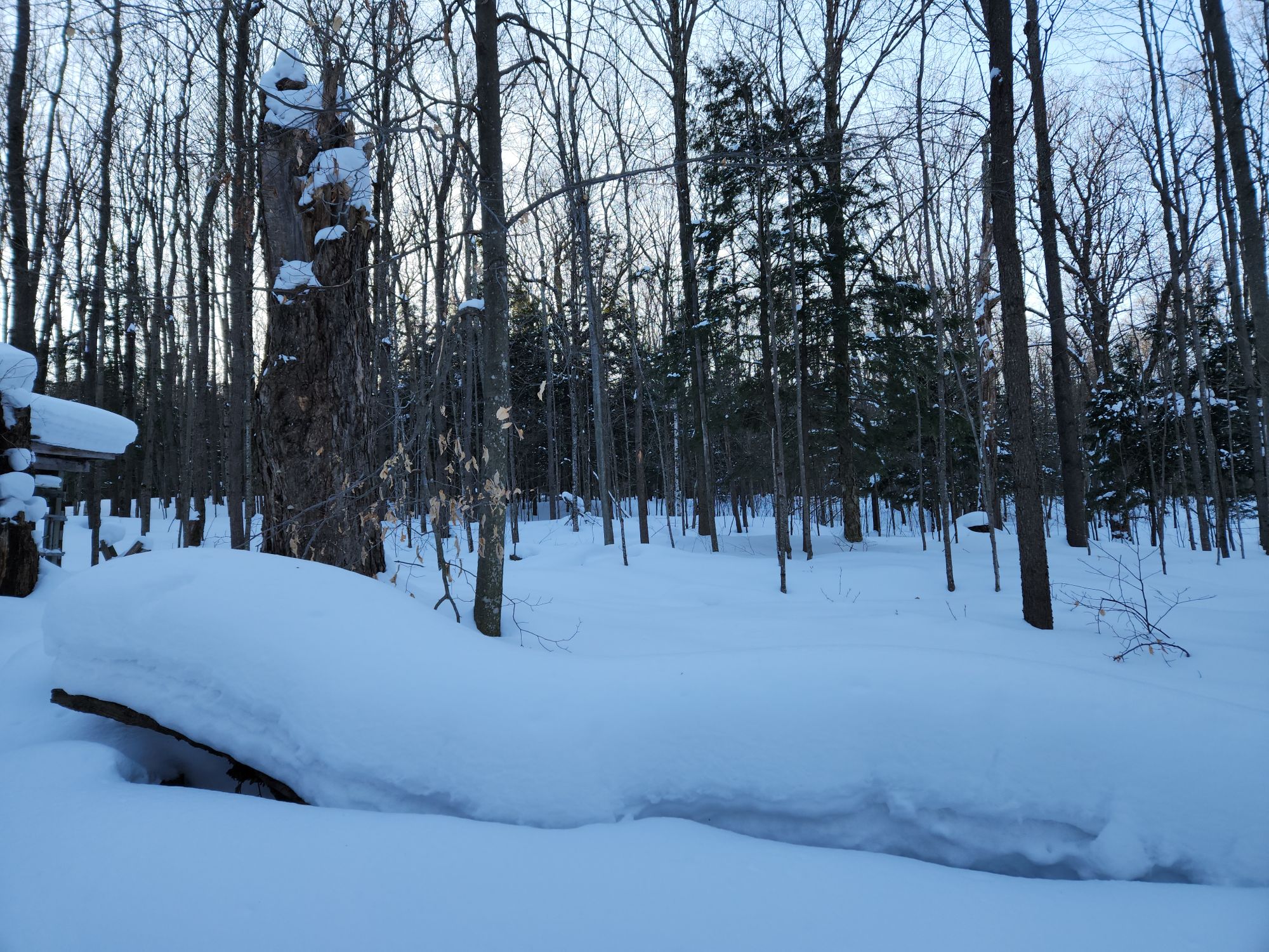 Le mercure a chuté, un autre mouvement de yoyo cher au printemps. La cabane est une oasis de douce chaleur au milieu de la forêt qui a repris des allures d’hiver.
