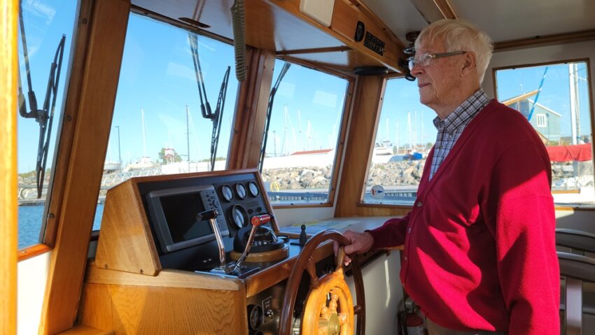 La marina, c’est son deuxième village natal. Il a quitté son premier en 1947. Autrefois, il se promenait sur les pontons pour prendre les nouvelles et l’air du temps. Les nuits de mauvais vent, il allait resserrer les amarres des embarcations voisines affolées par la houle. Maintenant, il se rend à pas vaillants et mesurés directement à son bateau proche de la passerelle. C’est toute la marina qui s’arrête pour le saluer, debout dans son cockpit, comme un patriarche à son balcon.