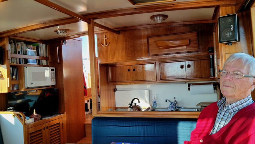 « Ce bateau-là fait partie de ma vie, je suis autant chez moi ici qu’à la maison. C’est un bateau que j’ai construit selon mes plans. Je suis bien à bord. J’y couche tous les soirs, sauf lorsqu’il fait froid ou mauvais. C’est calme. Bien protégé. Ça ne bouge pas. On est sur l’eau ».