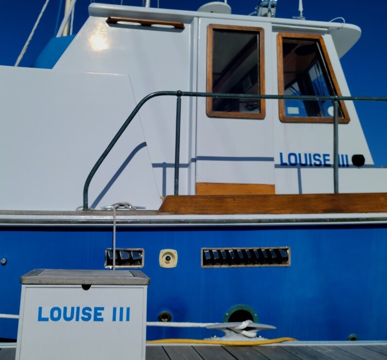 Le Louise III est l’âme de la marina de Rimouski. Avant qu’il accoste à son quai en mai, la saison n’a pas vraiment commencée. Lorsqu’il le quitte en automne, la saison est terminée. Louis Arsenault, son propriétaire, est l’un des pionniers fondateurs de la marina en 1984. Sa carte de membre porte le numéro 001.