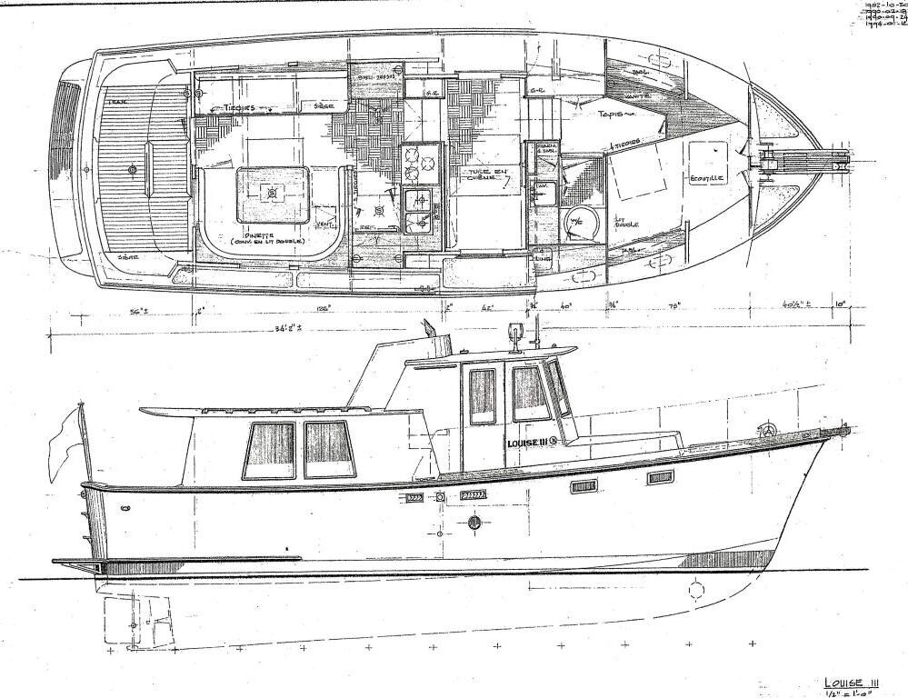 Dans le feu de son récit, Louis me propose de consulter les deux grosses briques de documents, fiches et dépliants techniques qu’il a méticuleusement compilées pendant des années. « J’ai tout dessiné ce qu’il y a dans le bateau, des réservoirs aux coussins ! ». Je décline gentiment l’offre en lui disant qu’une photo du plan fera l’affaire.