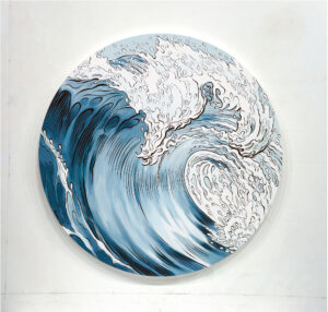 Contempler la vague, surfer la vague. Mais comment la peindre ? Comment capter en pleine effervescence un éclat liquide de lumière ?